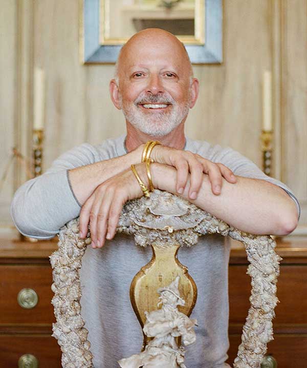 Andrew Fisher earned a Bachelor of Fine Arts degree in metal arts, drawing, and sculpture at the California College of the Arts and went on to design interiors with John Hallock, create fantasy installations with Tony Duquette, and establish himself as a fine artist with a loyal following. (See Andrew’s gilded tapestries and sculpture at andrewfisherart.com). Jeffry Weisman earned a Bachelor’s degree in Design and an MBA at Stanford. After designing corporate interiors at Skidmore, Owings & Merrill and Gensler, he established his own practice to develop and license product designs with Charles Pfister, later expanding into residential interiors.