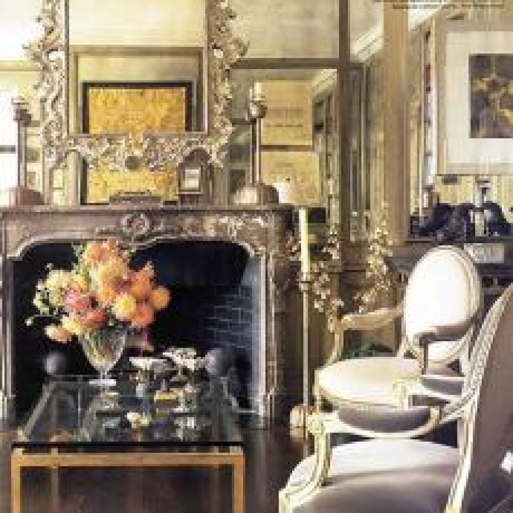 “We wanted it to feel comfortable,” says Weisman, “not uptight.” Historical accuracy wasn’t part of the equation either. “We don’t do period rooms, period,” insists Fisher. What’s exciting to them is “the mix,” Weisman adds. “You could say it is an assemblage of our favorite things.” Perhaps, but these favorite things come with an unusual pedigree. Fisher worked with Tony Duquette, and several pieces in the apartment, including an 18th-century Portuguese mirror that once belonged to actress Agness Moorehead, were gifts from the late designer. A series of 1804 drawings by architect Sir John Soane hangs nearby, the ornate mantelpiece is Louis XV, and a pair of early-19th-century Russian side chairs are upholstered in a fabric of woven peacock feathers.