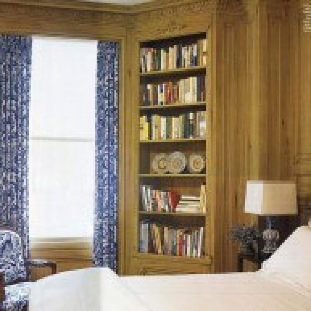 Lighthearted details – from walls painted with coral branches (to complement the pink-coral upholstered headboard) and colorful paper lanterns in Grace’s bedroom to the living room’s “floating” Lucite shelves, which display the colorful oeuvre of the tiny artist in residence – are expertly interwoven with Gillach’s collection of French and English antiques.